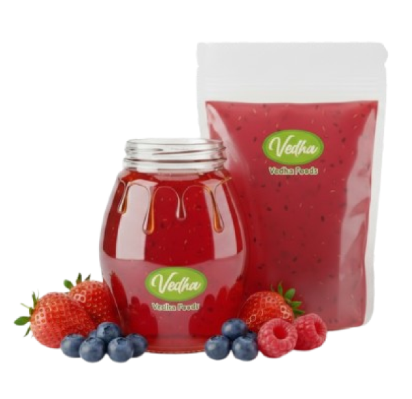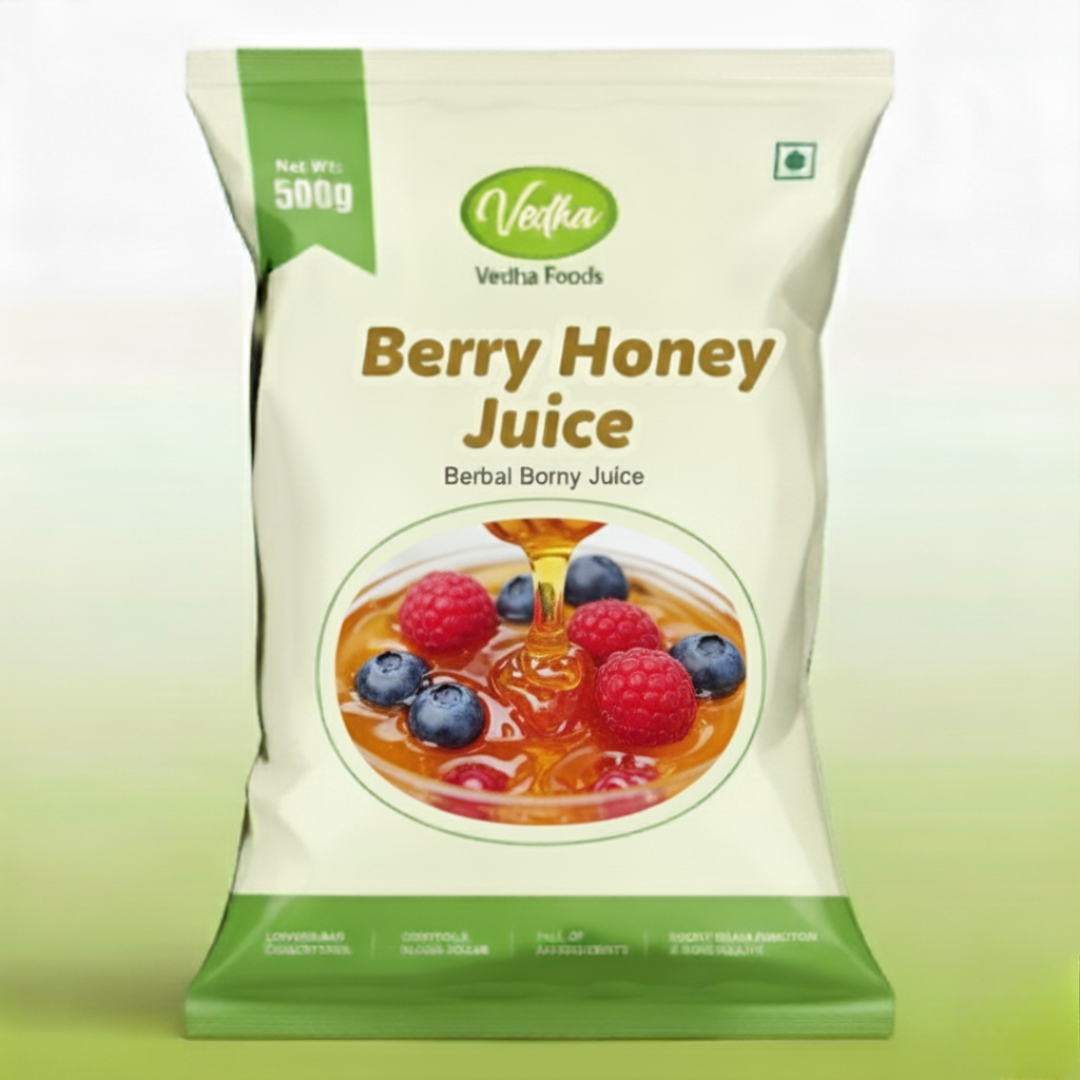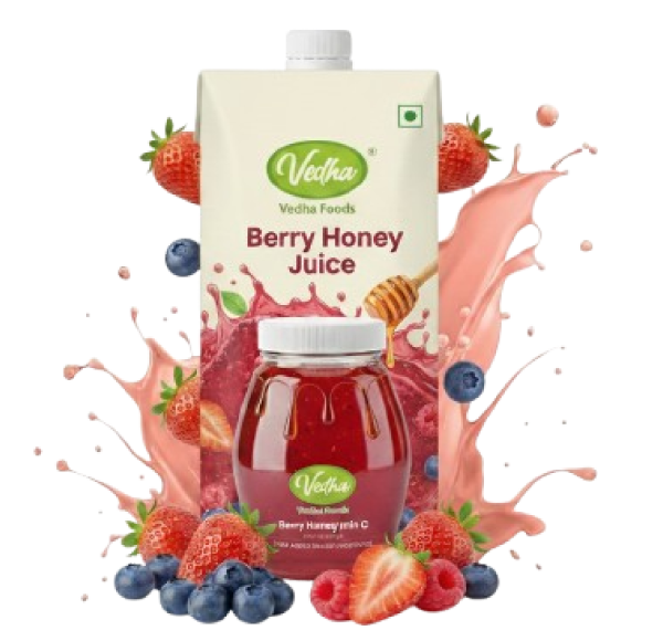 One of our signature offerings—a delicious and nutrient-rich juice made with a blend of berry fruits and natural honey.